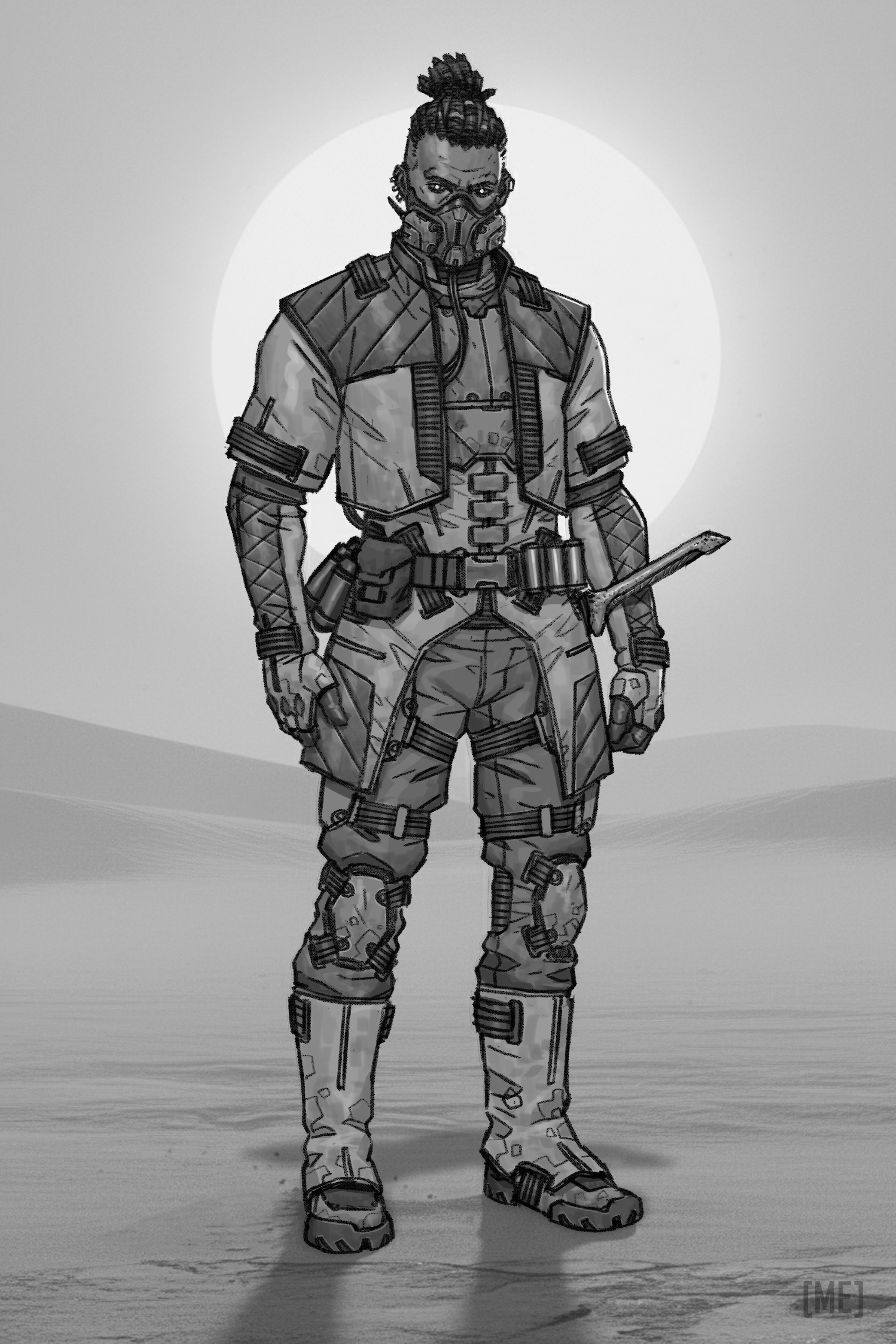 Dune-ish inspired character design. Playing with Good vs. Bad, Light vs. Dark aesthetic.
